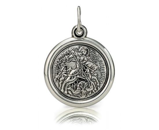 Георгий Победоносец, великомученик, наиболее почитаемый христианский святой. Пострадал во время правления императора Диоклетиана, после восьмидневных тяжких мучений в 303 году был обезглавлен. Изображение Георгия Победоносца на коне символизирует победу над диаволом.