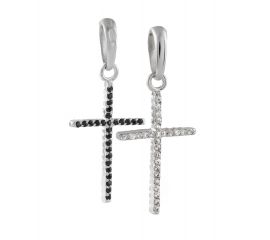 Двостороній срібний кулон, з одного боку чорні фіаніти з іншого безбарвні.